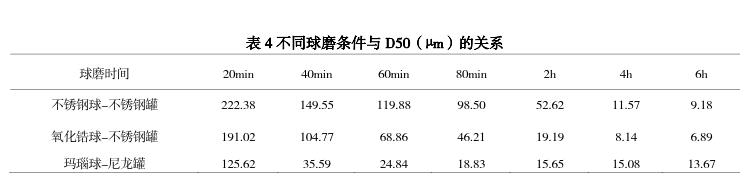 將蒸青片用 YXQM-4L 行星式球磨機分別采用不銹鋼球-不銹鋼罐、氧化鋯球-不銹鋼罐、瑪瑙球-尼龍罐進(jìn)行 20min、40min、60min、90min、2h、4h、6h 的球磨(料球比為 45g:493g,大中